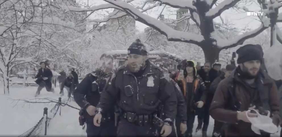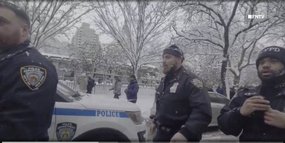 Según el Departamento de Policía de Nueva York, dos oficiales uniformados acudieron al parque tras una llamada al 911 que alertaba sobre una multitud desordenada reunida para una pelea masiva de bolas de nieve.